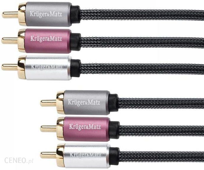 Wysokiej klasy kabel s�u��cy do przesy�ania d�wi�ku i obrazu, z obu stron zako�czony trzema wtykami RCA. Dzi�ki wykorzystaniu �y� g��wnych wykonanych z czystej miedzi oraz poz�acanych wtyk�w masz pewno��, �e sygna� b�dzie doskona�y, a kabel pos�u�y Ci przez d�ugi czas. Produkt idealnie nada si� do nowoczesnych system�w audio/video. Kable Kruger&Matz charakteryzuje wysoka jako�� wykonania oraz zgodno�� z normami okre�lonymi w polskich i mi�dzynarodowych standardach.Typ: RCA Rodzaje ��czy: 3 wtyki RCA 3 wtyki RCA D�ugo��: 300 cm